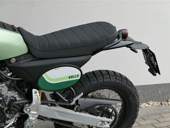 Jeho off-roadová konfigurace — obsahující 43mm plně nastavitelné odpružení se zvětšeným zdvihem, vysoko umístěný přední blatník, kyvnou vidlici z hliníkové slitiny s variabilním průřezem a progresivní přepákování — z něj dělá ideálního společníka pro jezdce, kteří hledají intenzivní zážitky a dobrodružství. Dominantním prvkem verze Rally je 21" přední kolo, které zaručuje špičkové off-roadové vlastnosti.