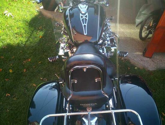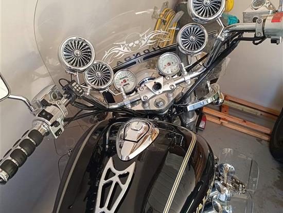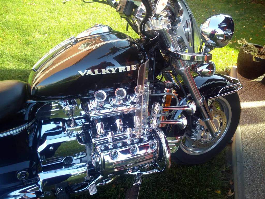 Prodám Honda Valkyrie F6C r.v.1999, šestiválec,obsah 1520,nebouraná.Dovoz USA v ČR první majitel.stk do 30.3.2027 Najeto 38700 mil Pravidelně servisovaná, servisní knížka. Motorka má originál uzamykatelné kufry,dva klíče, přední štít, chrániče kolen, zadní světlo plus blinkry v bílé barvě, zadní opěrka, zadní kožený kufr, podsvícení motoru 6 barev, nová baterie, nové pneu, nové rádio,4 repráky ovládání na řidítkách, spoustu chromovaných doplňků světelná rampa,přídavná světla,konce blatníků, nové páčky,gripy, předkopy,rolka,nosič, hodinky, trubkové lemování kolem motorky a další doplňky, všechny výjimky zapsány v TP. Důvod prodeje málo času.