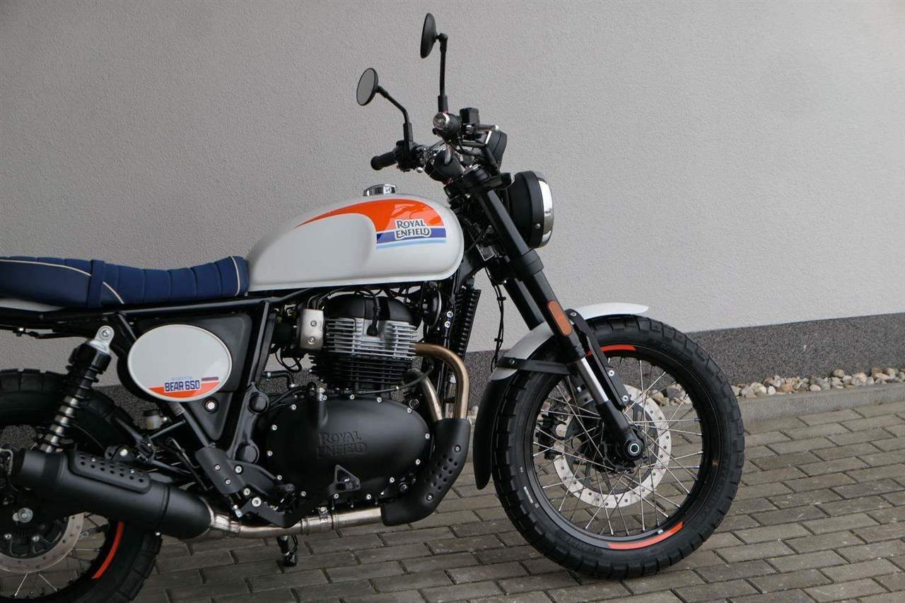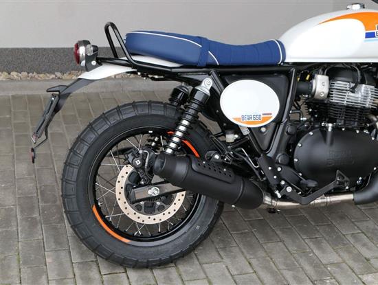 Silniční scramler s duší šedesátých let. Bear 650 ztělesňuje ducha šestnáctiletého nováčka, který se v roce 1960 seřadil vedle stovek spálených nadějí, všichni hladoví po vítězství v nejdivočejším závodě, jaký kdy kalifornská poušť znala - Big Bear Run.