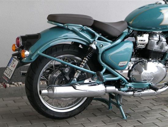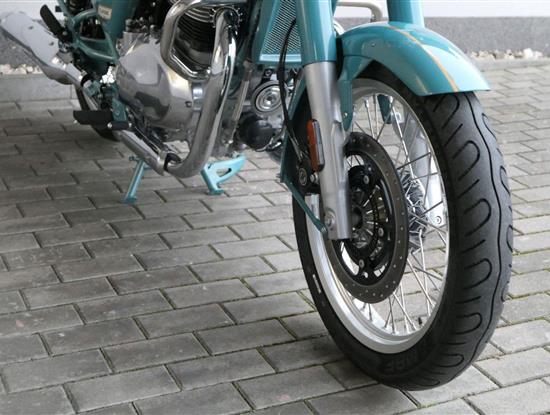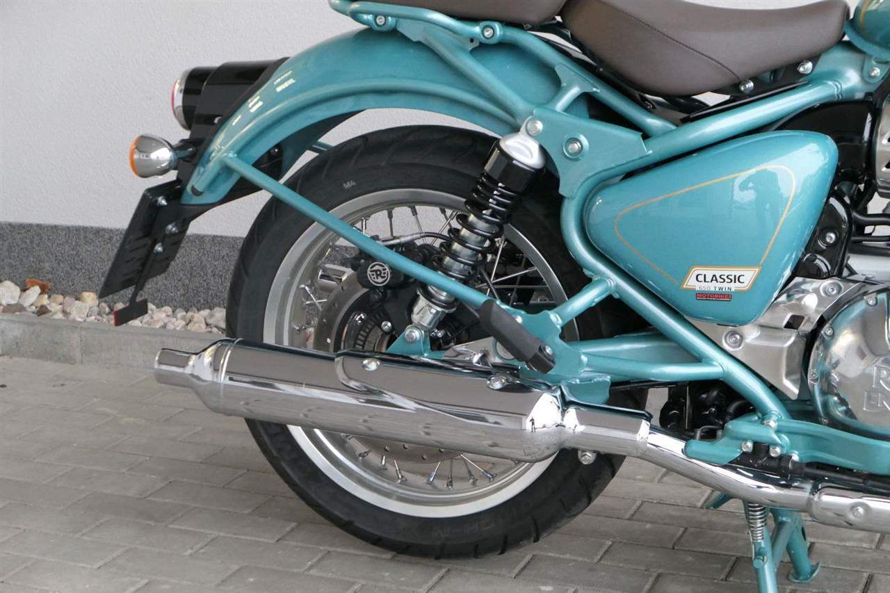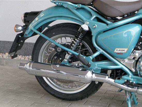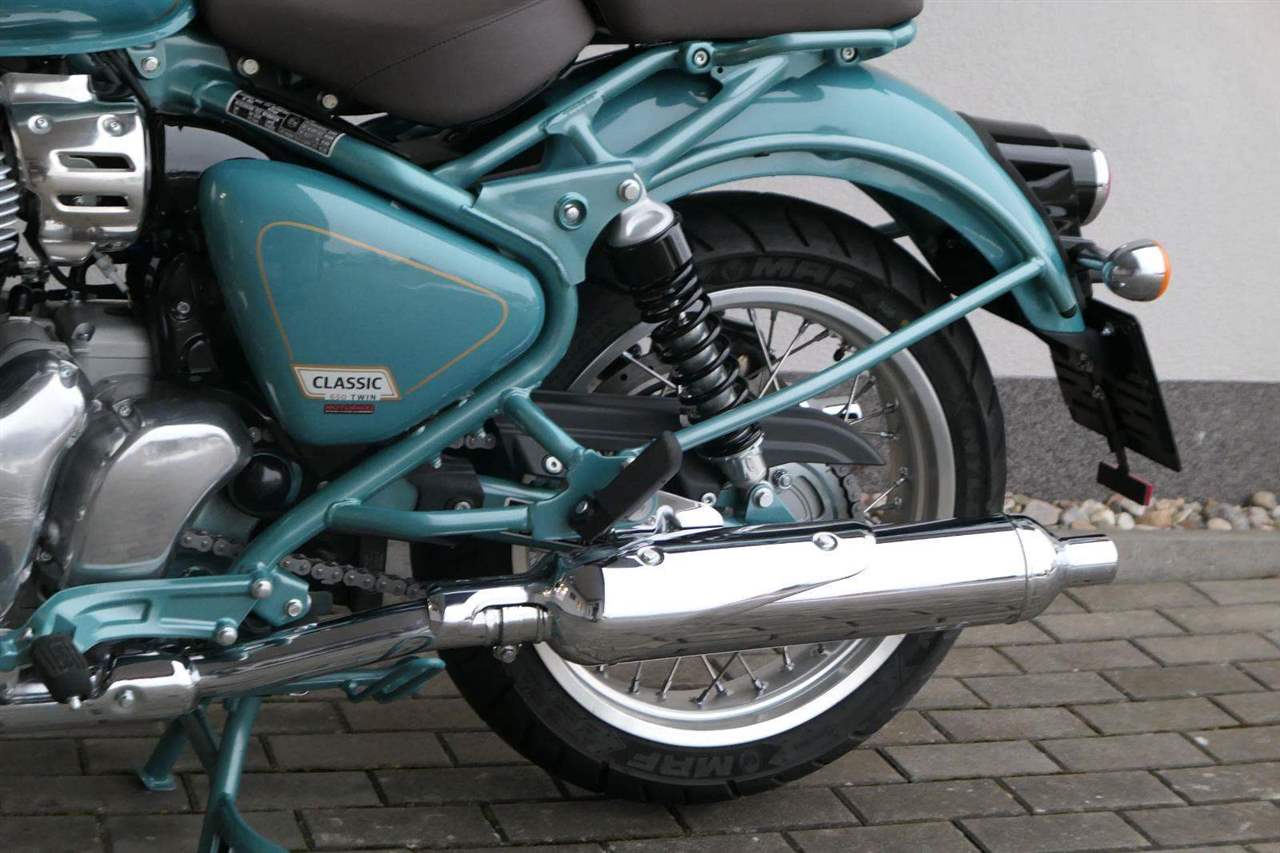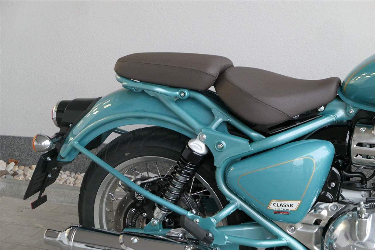 -sebejistotu a plynulost jízdy bez ohledu na to, kam máte namířeno, zajistí ověřené přední odpružení modelu Classic 650 i dvoutrubkové hydraulické zadní odpružení od společnosti Showa.