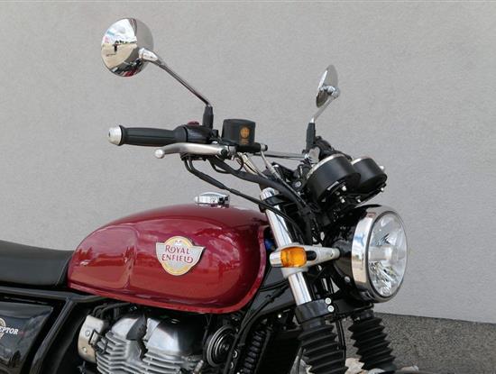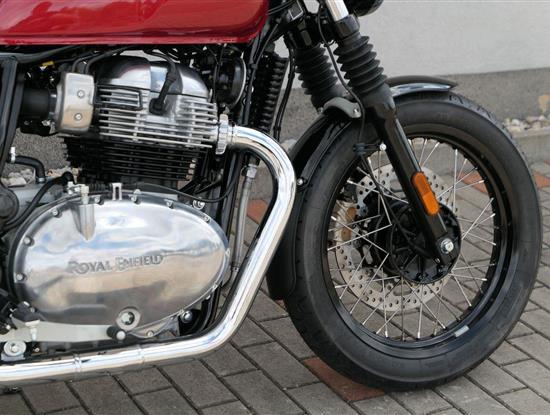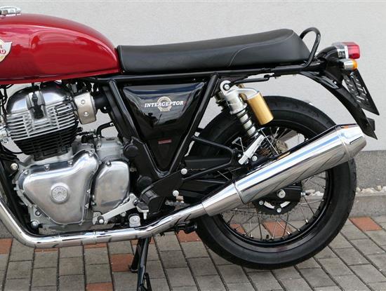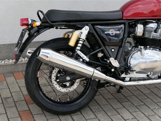 Typický moderní klasický roadster - se kterým je radost jezdit na klikatých silnicích, dálnicích, nebo v městské džungli, se stejnou lehkostí a grácií jak pro začátečníky tak pro zkušené jezdce. Easy come, easy GO Rám, vyvinutý ve spojení s legendárním Harris Performance, důkladně testován na odolnost, nabízí vynikající rovnováhu a ovladatelnost. Spolu s jemně vyladěným odpružením s dvojitými tlumiči naplněnými plynem pro dosažení optimální kombinace pohodlí a cítění podvozku zajišťuje, že s GT 650 je jízda dynamická a živá jako nikdy předtím. Srdce všeho Vzduchem / olejem chlazená paralelní dvojitá konfigurace, která byla vybrána pro své nezahlcené linie. Motor 648 cm3 vytvořen pro jízdu v reálném světě, s dostatečnou silou pro lehkou jízdu v městské dopravě nebo bez námahy na otevřené cestě. Dvojité těleso škrticí klapky spárované s vysoce přesným systémem vstřikování paliva Bosch vede k vynikající odezvě škrtící klapky v celém rozsahu otáček. Smooth operator Klasická estetika 18 "kola, jejichž konstrukce a složení byly speciálně vyvinuty pro Royal Enfield pro doplnění podvozku a odpružení ve všech jízdních podmínkách. Kombinace dvojitého pístu odvozeného od Brembo, plovoucí přední disk a dvoukanálový systém ABS Bosch zajišťují spolehlivé brzdění s progresivní zpětnou vazbou. Paralela bez paralel Se širokým opěrným řídítkem má Interceptor komfortní vzpřímenou řídící jízdní polohu. Ergonomický trojúhelník, který je tvořen řídítky, má nízké sedadlo a stopu, je nastaven pro pohodlí s jemným sportovním zaujetím, který pomáhá jezdci co nejvíce využít agilního podvozku a intuitivně se s ním propojit. Stará škola nově Zatímco nádherně tvarované linie lesklého, ručně leštěného hliníkového motoru pokrývají zlatou éru motocyklů, to, co nutí otáčet hlavy, je hluboký zvuk výfuku - vytvářející buď opojný rytmické bublání, nebo mohutné dunění. Dokonalost v detailech Royal Enfield poprvé používá šestistupňovou převodovku, vyvinutou speciálně pro 650 Twin - prošla náročným testováním, s pečlivě vybranými převodovými poměry, které dodávají nejlepší poměr pro všechny jízdní podmínky. Výsledek je patrný z optimálního řazení a ideálního záběru. Převodovka je doplněna o spojku, která má asistovanou funkci pro lehký stisk páky.