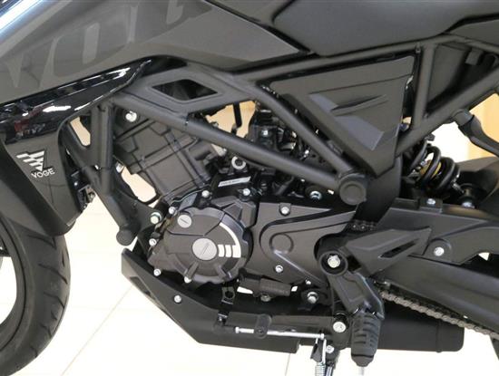 Srdcem motocyklu je kapalinou chlazený čtyřtaktní jednoválec o objemu 124,8 cm³ s rozvodem DOHC, který nabízí maximální výkon 11 kW (15 PS) a točivý moment 12 Nm. Motor je kultivovaný, ochotně se vytáčí a ve spojení se šestistupňovou převodovkou poskytuje zábavný a zároveň předvídatelný projev. Velkou výhodou jsou nízké provozní náklady – spotřeba pouhých 2,3 l / 100 km a dojezd až kolem 400 km díky 10litrové nádrži. Samozřejmostí je splnění emisní normy EURO 5 + .