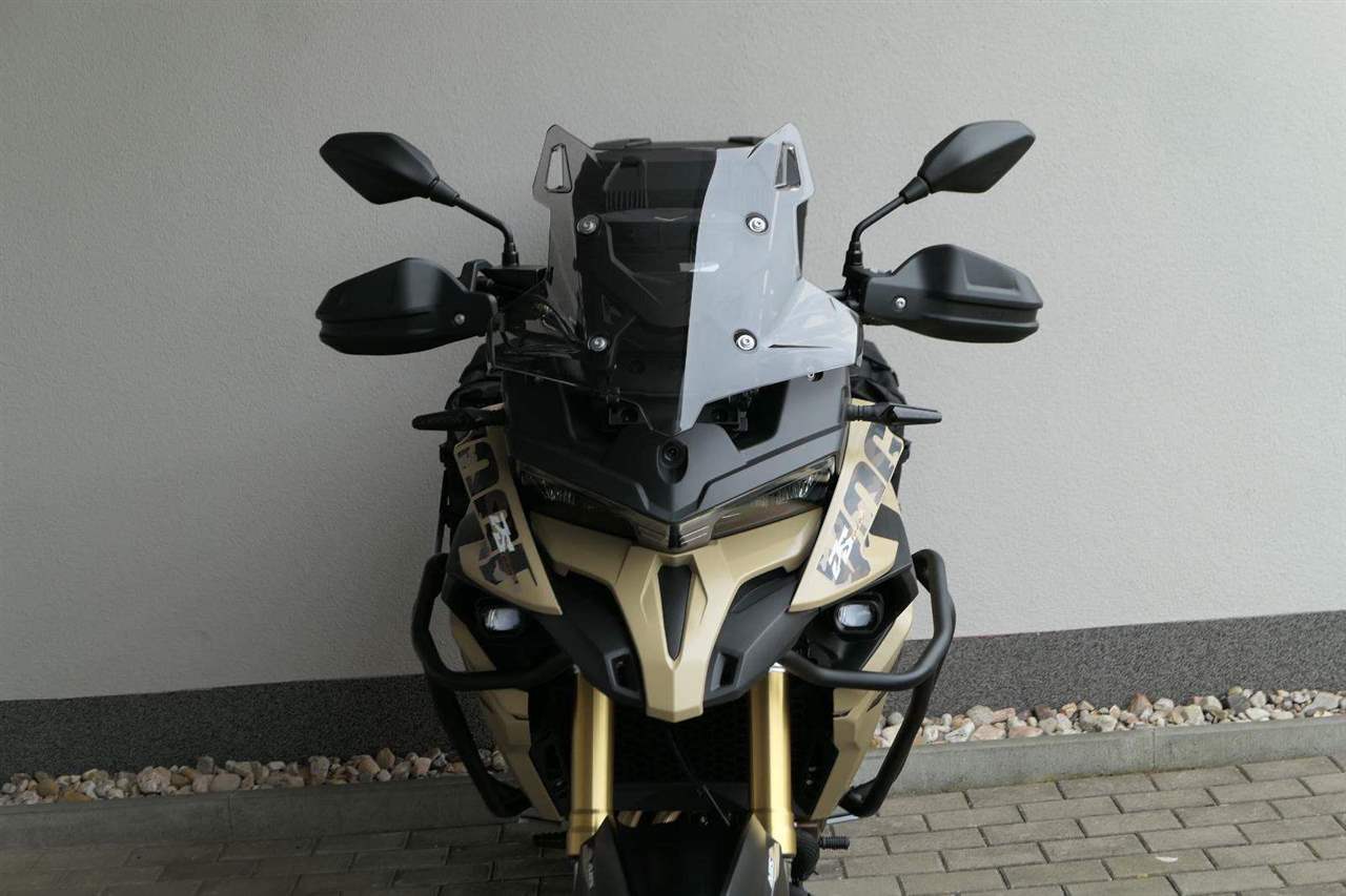 Těšit se můžeš taky na plexi, který si z místa řidiče bez nářadí nastavíš do dvou poloh. Oceníš i hliníkovej kryt motoru, LED světla včetně přídavnejch bodovek, boční i středovej stojan a hafo další výbavičky. Jo, a nově mám taky podsvícený ovladače na řídítkách, takže už žádný tápání ve tmě.