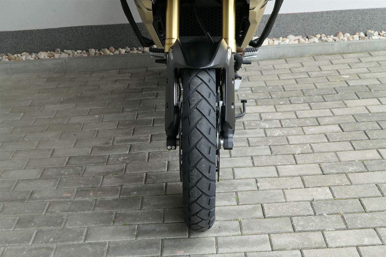 Na fešnejch drátěnejch kolech mám obutý bezdušový gumy Metzeler Tourance. Naprostej spoleh je na topový brzdy od japonskýho Nissinu. Pomocí dvou jízdních režimů mi snadno poručíš, jestli dáme piánko, nebo přitvrdíme v režimu sport.