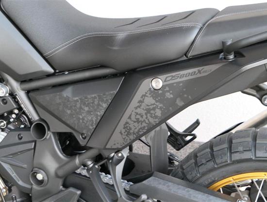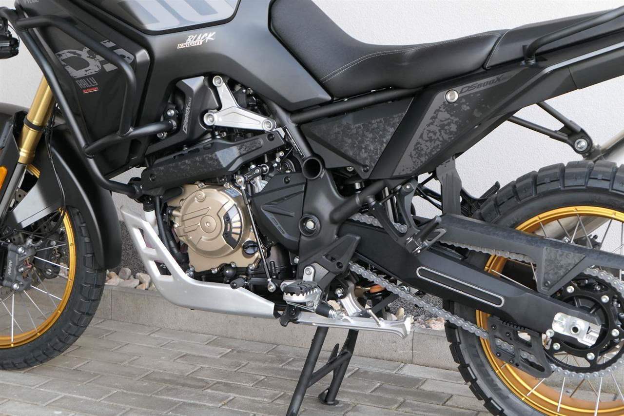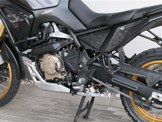 Můj štíhlej pas ti dovolí užít si jak jízdu vestoje, tak vsedě. Vysoký plexi mám fikaně posunutý dopředu, takže ti nebude mlátit do brady třeba při skocích. No a moje stupačky jsou nejen prostorný, ale samože taky zubatý, takže tě podržej v každý situaci.