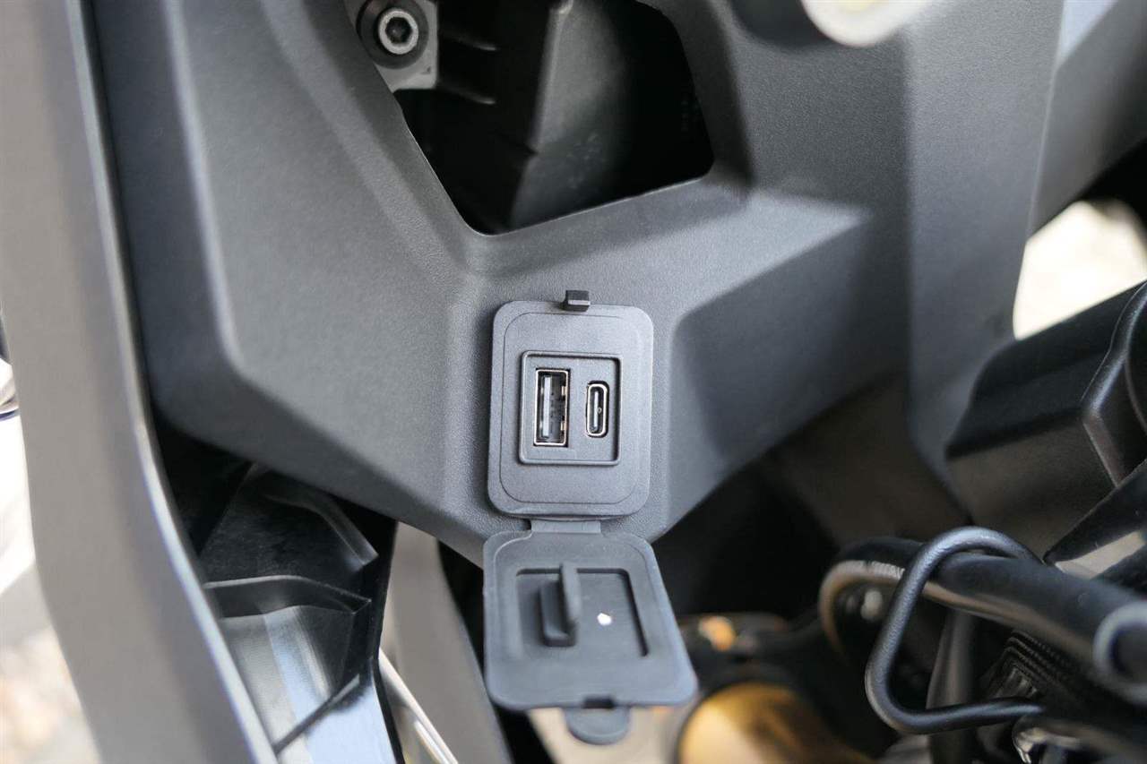 Do vínku jsem dostala elektro výbavu přesně podle teréňácký bible. ABS si můžeš vypnout buď komplet, nebo jen na zadním kole. Vypinatelnou mám samozřejmě taky kontrolu trakce. Hlavně v divočině voceníš rotační tlumič řízení. A když bude kosa, uvítáš vyhřívaný sedlo i gripy. Jasný, určitě seš taky drsňák jako já, ale vyrazit vstříc dobrodružství s troškou komfortu není žádná vostuda.