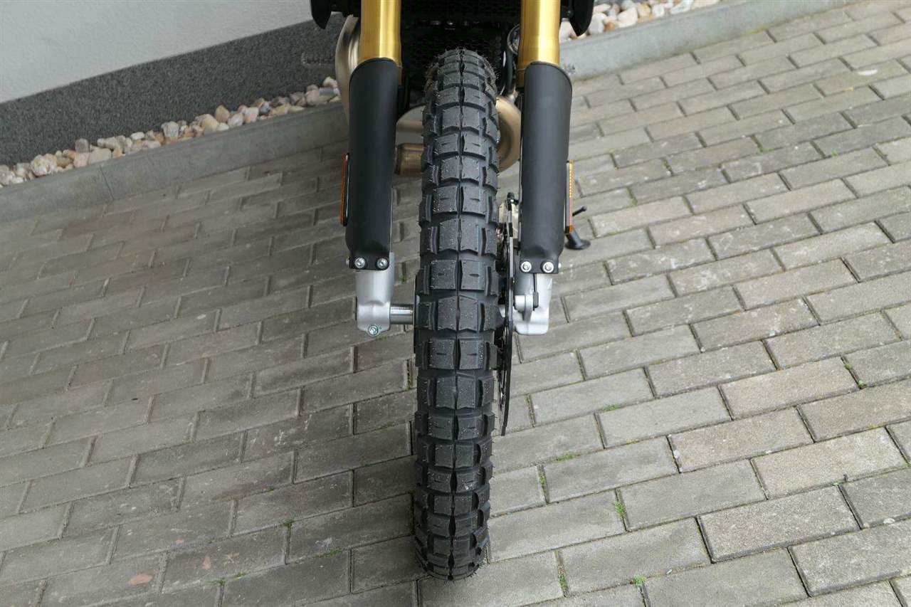 Jeho off-roadová konfigurace — obsahující 43mm plně nastavitelné odpružení se zvětšeným zdvihem, vysoko umístěný přední blatník, kyvnou vidlici z hliníkové slitiny s variabilním průřezem a progresivní přepákování — z něj dělá ideálního společníka pro jezdce, kteří hledají intenzivní zážitky a dobrodružství. Dominantním prvkem verze Rally je 21" přední kolo, které zaručuje špičkové off-roadové vlastnosti.