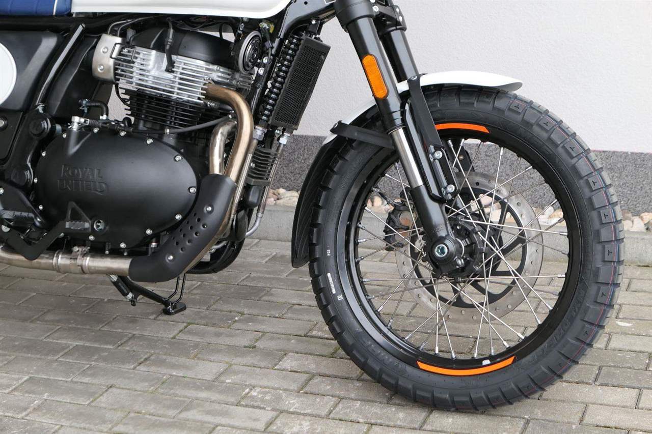 Napájení díky emocím a pohon zajišťuje ověřený paralelní dvouválec Royal Enfield o objemu 650 ccm. Je chráněn pláštěm ve vysoce odolné, prémiové černé úpravě, čímž získává robustní a účelné vzezření a je očividně dokonalým scramblerem.