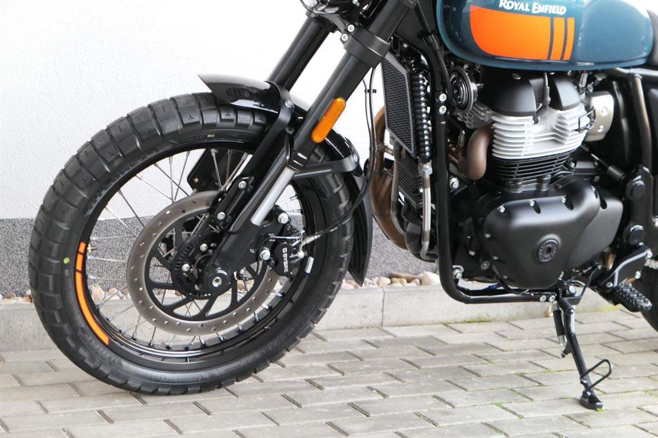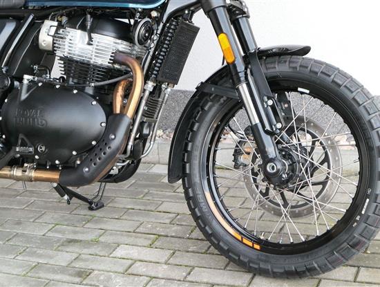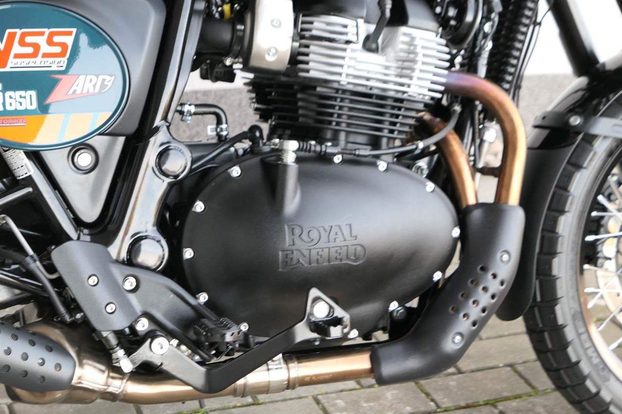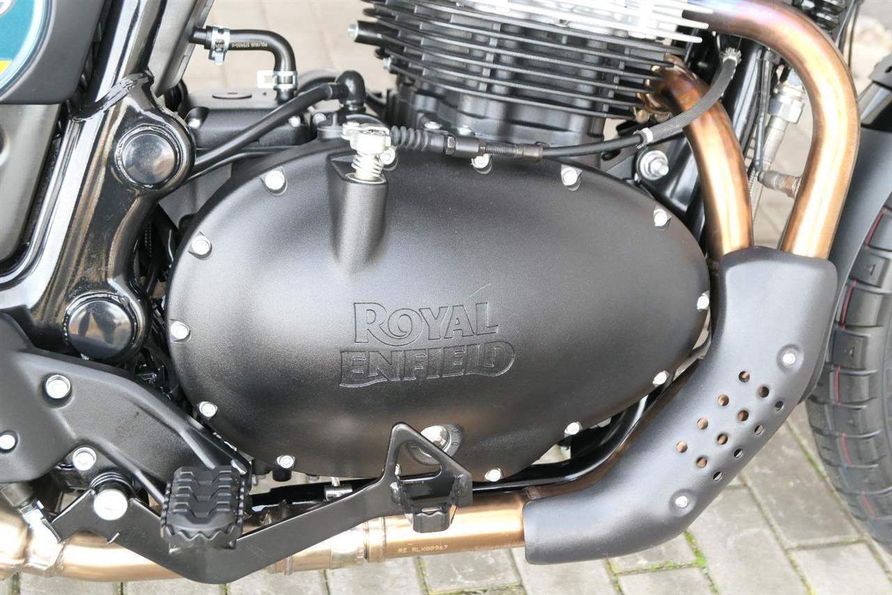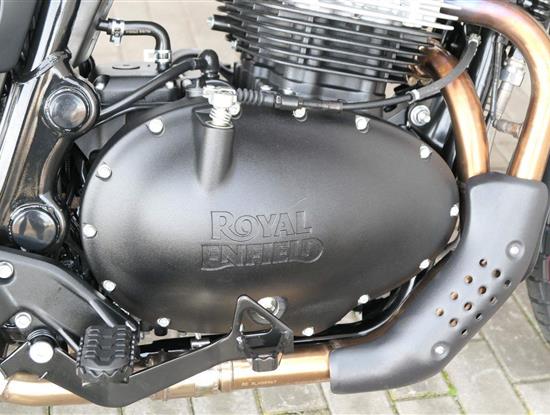 Napájení díky emocím a pohon zajišťuje ověřený paralelní dvouválec Royal Enfield o objemu 650 ccm. Je chráněn pláštěm ve vysoce odolné, prémiové černé úpravě, čímž získává robustní a účelné vzezření a je očividně dokonalým scramblerem.