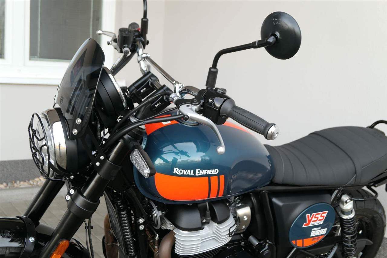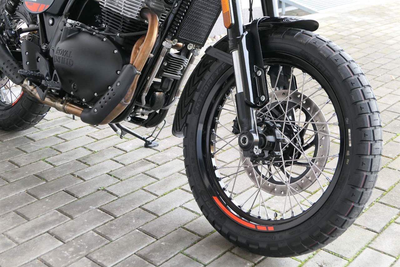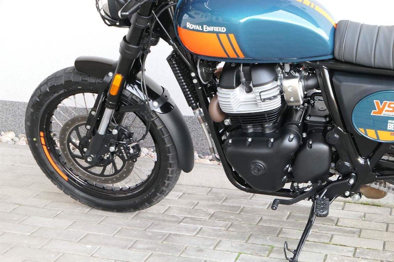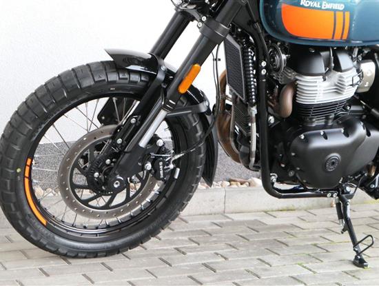 Napájení díky emocím a pohon zajišťuje ověřený paralelní dvouválec Royal Enfield o objemu 650 ccm. Je chráněn pláštěm ve vysoce odolné, prémiové černé úpravě, čímž získává robustní a účelné vzezření a je očividně dokonalým scramblerem.