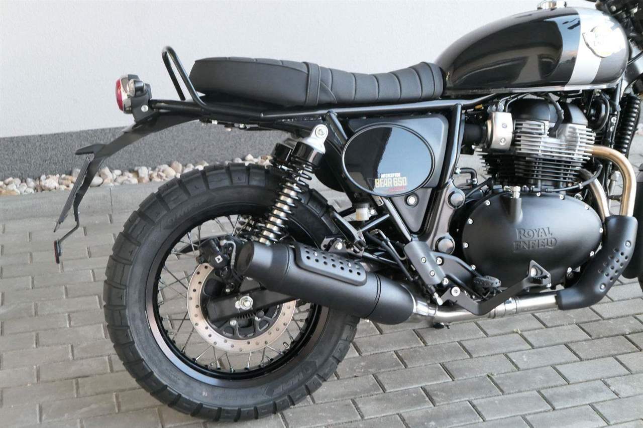 Napájení díky emocím a pohon zajišťuje ověřený paralelní dvouválec Royal Enfield o objemu 650 ccm. Je chráněn pláštěm ve vysoce odolné, prémiové černé úpravě, čímž získává robustní a účelné vzezření a je očividně dokonalým scramblerem.