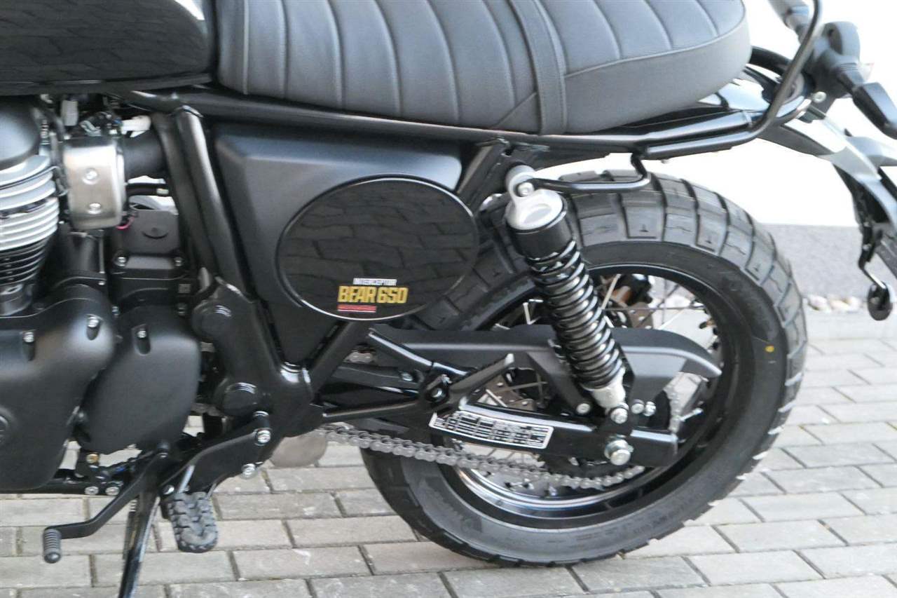 Silniční scramler s duší šedesátých let. Bear 650 ztělesňuje ducha šestnáctiletého nováčka, který se v roce 1960 seřadil vedle stovek spálených nadějí, všichni hladoví po vítězství v nejdivočejším závodě, jaký kdy kalifornská poušť znala - Big Bear Run.