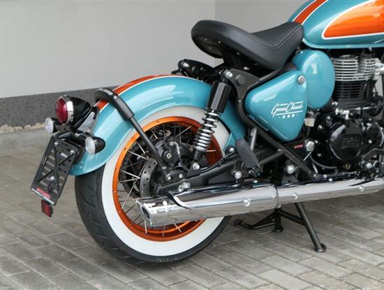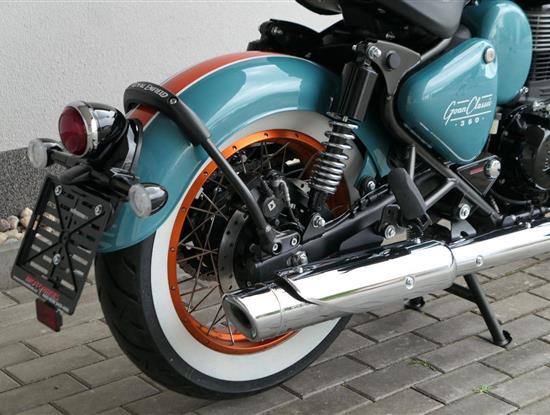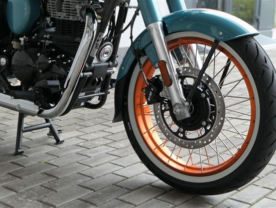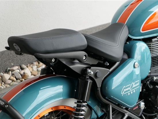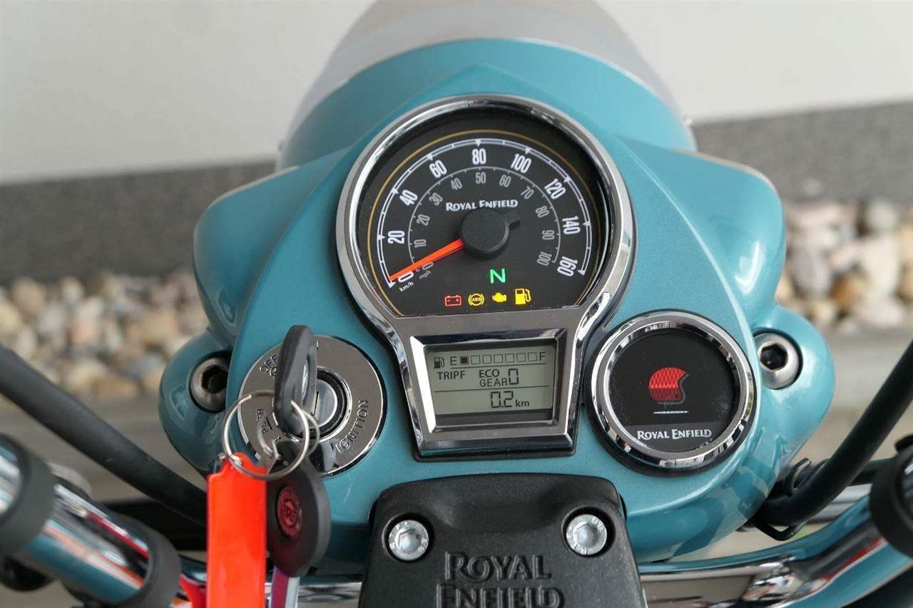- Osvědčený motor 350 cm³ (J-platforma) – kultivovaný chod, spolehlivost a typický zvuk Royal Enfield