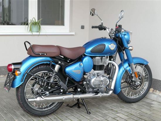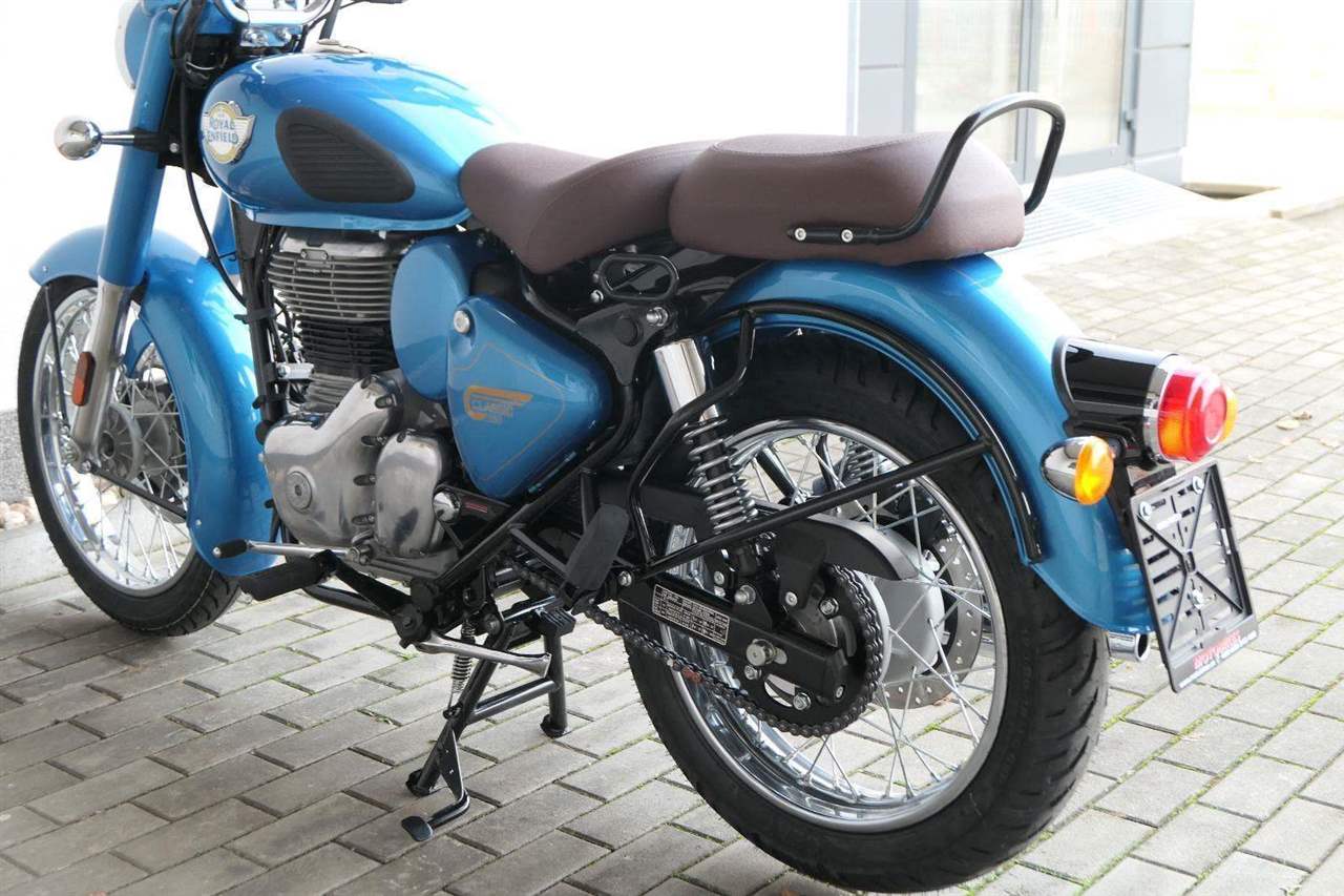 Ústředním prvkem nového Classic 350 je zcela nové srdce, které bije do jedinečného rytmu Royal Enfield. Ve spojení s novým rámem se dvěma spodními trubkami, který jezdí pevně a věrně, solidní a spolehlivou kvalitou konstrukce, je Classic vaším spojencem, ať už je váš cíl kdekoliv. Vzpřímená jízdní poloha dává jezdci Classicu vynikající vzhled na silnici, zatímco brzdy s větším průměrem zvyšují jeho brzdnou sílu. Ale silnější neznamená jen schopný a odolný, Classic je obdařen také pohodlím, s vylepšeným širším sedlem, které zpříjemňuje jízdu.