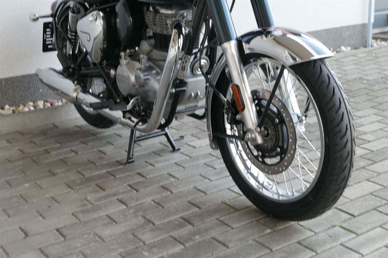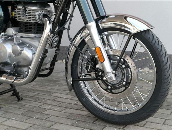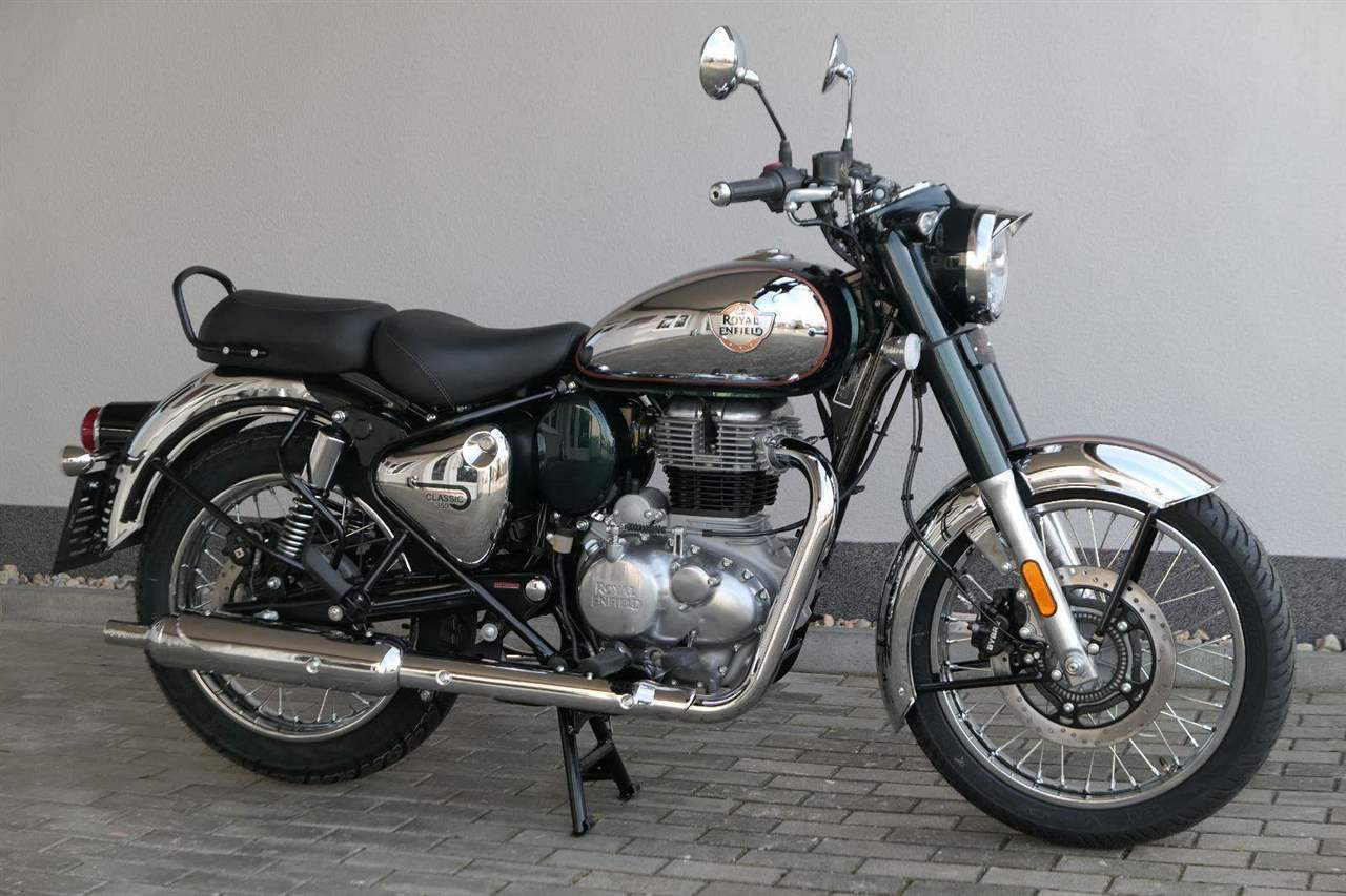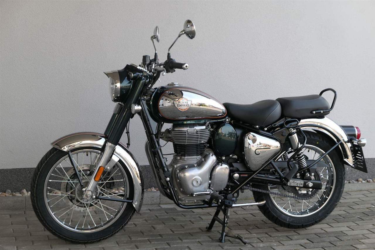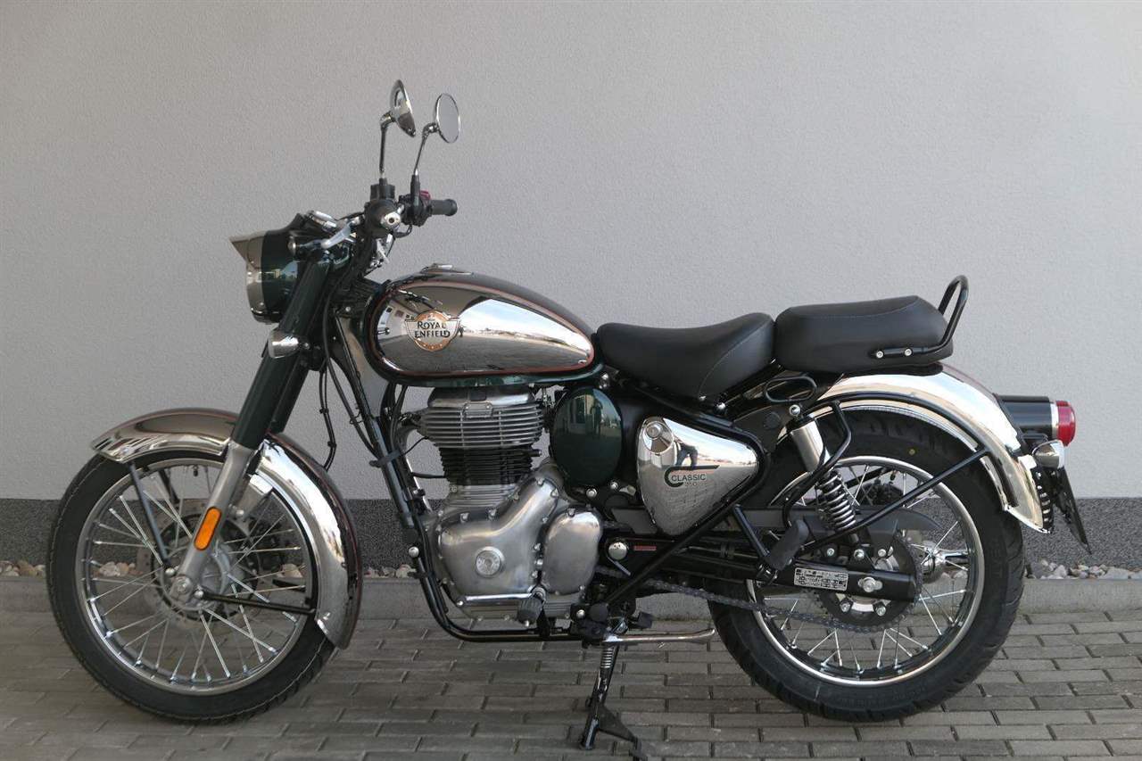 Ústředním prvkem nového Classic 350 je zcela nové srdce, které bije do jedinečného rytmu Royal Enfield. Ve spojení s novým rámem se dvěma spodními trubkami, který jezdí pevně a věrně, solidní a spolehlivou kvalitou konstrukce, je Classic vaším spojencem, ať už je váš cíl kdekoliv. Vzpřímená jízdní poloha dává jezdci Classicu vynikající vzhled na silnici, zatímco brzdy s větším průměrem zvyšují jeho brzdnou sílu. Ale silnější neznamená jen schopný a odolný, Classic je obdařen také pohodlím, s vylepšeným širším sedlem, které zpříjemňuje jízdu.