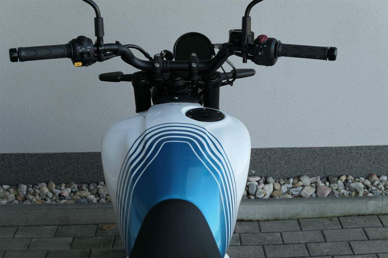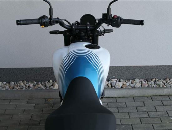 Celkově má Guerilla poměrně moderní tvary, Royal ale zdůrazňuje, že zde nejsou žádné nadbytečné plasty a serepetičky, a že jde v principu o jednoduchou a zábavnou motorku – což koneckonců spojuje všechny modely Royal Enfieldu. Opět je nutné pochválit výběr barev, který je vychytaný přesně tak, jak jsme u Royalu zvyklí. Z celkem pěti zbarvení je jenom jedno nudné, a sice jednolitá stříbrná Smoke Silver. Zbytek, tedy Brava Blue, Yellow Ribbon, Playa Black a Gold Dip zajímavě kombinují barevnou grafiku a ve třech případech dostanete i barevné ráfky.