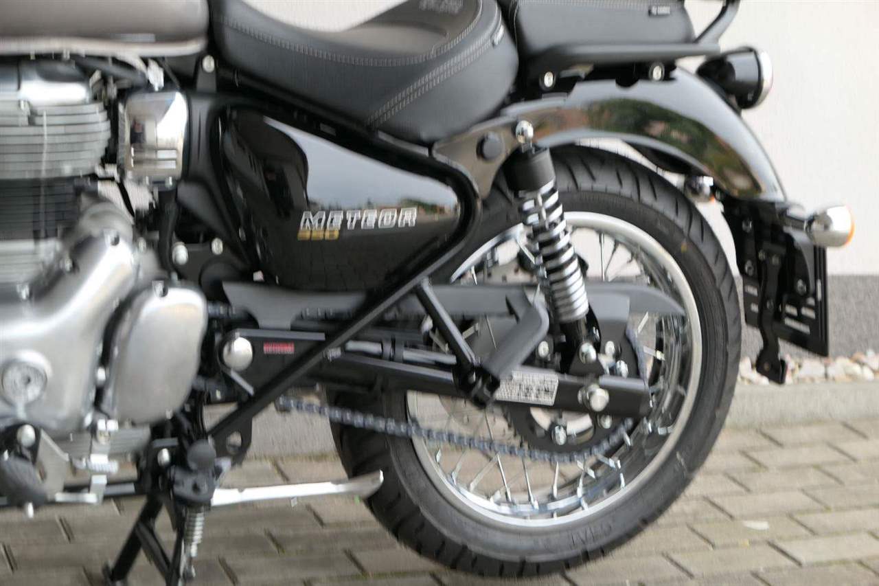Díky vylepšenému nastavení podvozku, přístupné jízdní poloze, pokročilým brzdným schopnostem, vysoké specifikaci odpružení a rychlému přenosu výkonu je Meteor připraven posvítit si na svět cruiserů. Zcela nový podvozek je silnější, tužší a odolnější a je navržen pro přímou stabilitu, zatáčení a manévrovatelnost bez kompromisů v oblasti pohodlí.