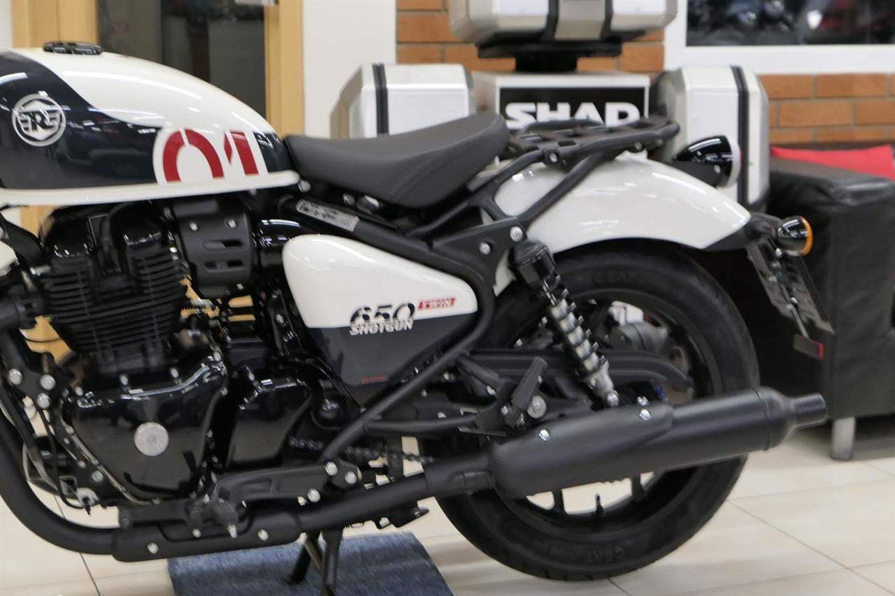 Nový Royal Enfield Shotgun 650 je motocykl, který je definován svým jezdcem. Jeho zcela nová karoserie a postoj jsou prázdným plátnem, které se vzpírá tradiční kategorizaci motocyklů a přebírá osobnost svého jezdce. Jeho modulární konstrukce umožňuje snadné přepínání mezi třemi režimy - od jednomístného přes dvoumístný až po cestovní vůz pro přepravu zavazadel. Otočením klíčku se odklopí sedadlo spolujezdce, což nabízí maximální flexibilitu. Těm, kteří hledají poutavou a agresivní jízdu, nebo těm, kteří hledají pohodovější zážitek, Shotgun 650 bez námahy vyhoví svou vzpřímenou a jistou jízdní pozicí, která podporuje obojí a přizpůsobuje se náladě a stylu jízdy jezdce. Kombinuje retro-futuristický design s moderními prvky. LED světlomet umístěný v nádherné neomoderní gondole na zakázku zůstává věrný estetice neo-retro fúze a zároveň nabízí lepší viditelnost. Motocykl je vybaven digitálně-analogovým sdruženým přístrojem, který je vybaven navigačním systémem Tripper a je navržen tak, aby poskytoval všechny informace, které potřebujete, když se vydáte na cestu. Je také vybaven nabíjecím portem USB, abyste měli svá zařízení na cestách stále nabitá.