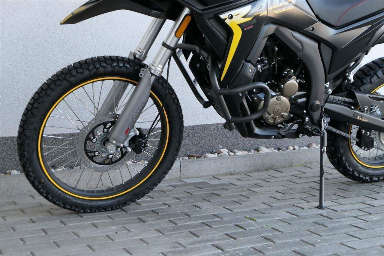 Míň je někdy víc. Řekli si vývojáři ve světoznámý fabrice Loncin a navrhli mě jako lehký a obratný enduro. S plnou nádrží mám pouhejch 158 kilo, takže se mnou snadno můžeš dělat psí kusy v terénu. Tomu nahrává i můj živej motor – čtyřtaktní jednoválcovej vodník vo objemu 292 cm3 a s výkonem přes 28 koní. Uvidíš, že se nezaleknu žádnýho stoupání a hravě si poradím se šutráky i s hlubším bahnem. Do karet nám bude hrát taky moje světlá vejška 280 mm.