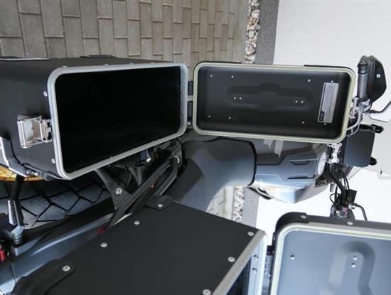 Kromě větší síly a lepšího podvozku mám taky vylepšenej 7palcovej displej. Má vyšší jas, takže na něm všecko krásně uvidíš i za vostrýho slunka. Mobil si snadno spáruješ pomocí blůtůčka. Jen co to uděláš, dostaneš na přístrojovku šipkovou navigaci, díky který nemineš ani tu nejzašitější odbočku. No a 12V zásuvka nebo USB konektor? Jasněže voboje!