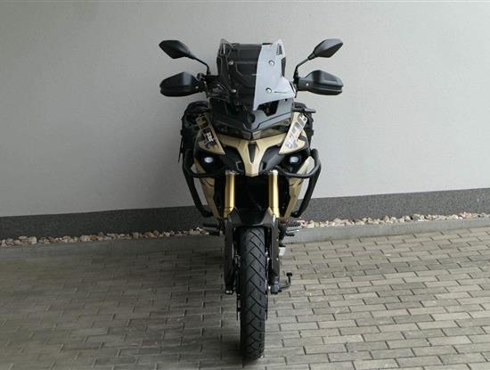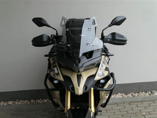Těšit se můžeš taky na plexi, který si z místa řidiče bez nářadí nastavíš do dvou poloh. Oceníš i hliníkovej kryt motoru, LED světla včetně přídavnejch bodovek, boční i středovej stojan a hafo další výbavičky. Jo, a nově mám taky podsvícený ovladače na řídítkách, takže už žádný tápání ve tmě.