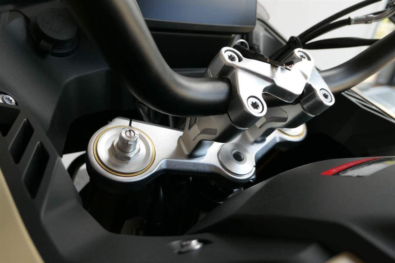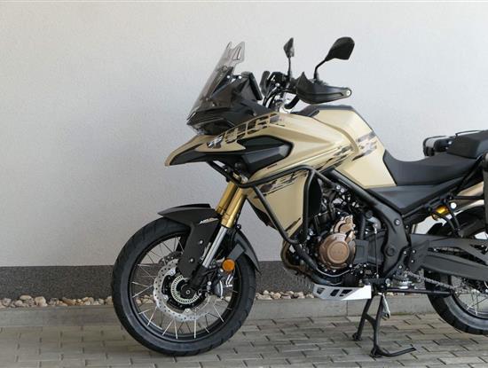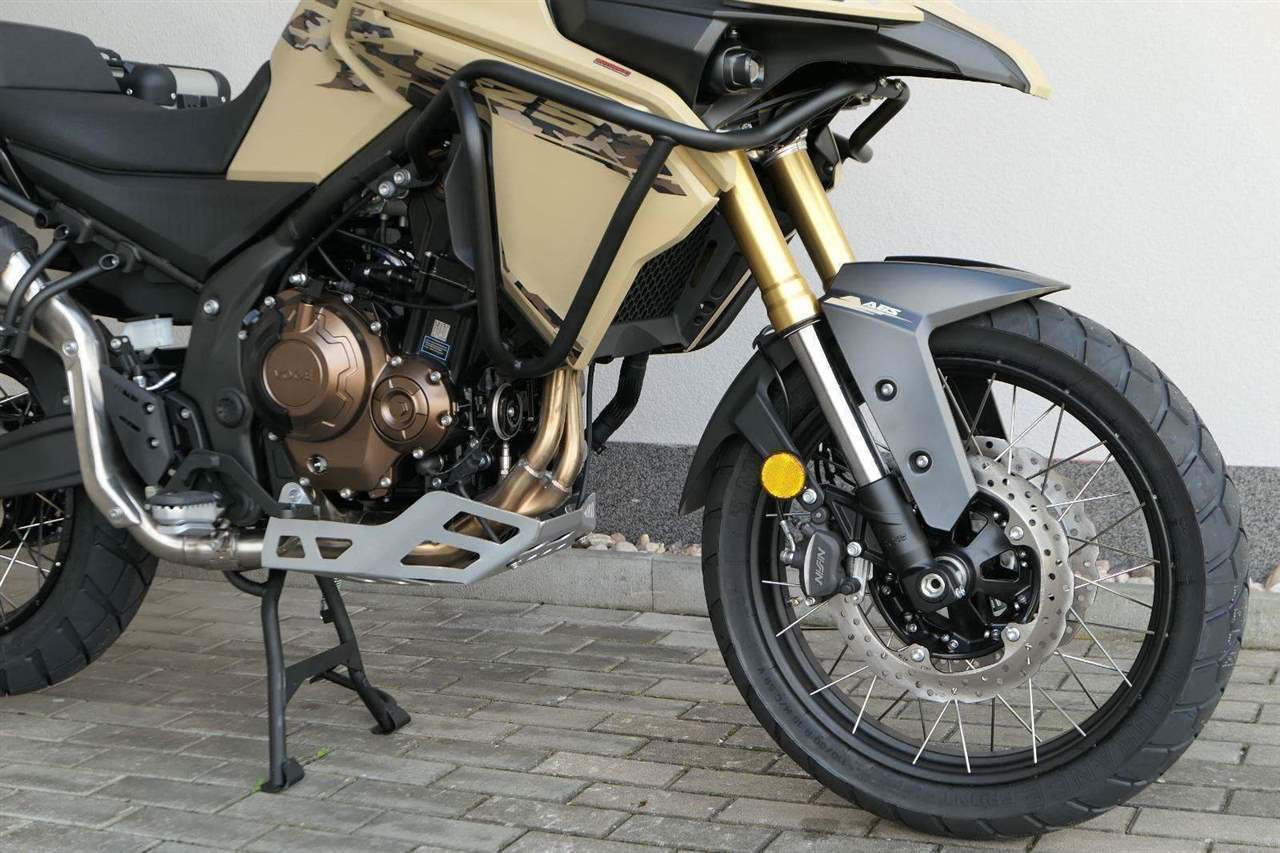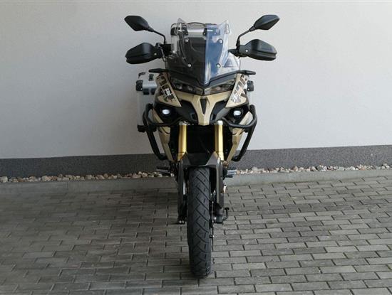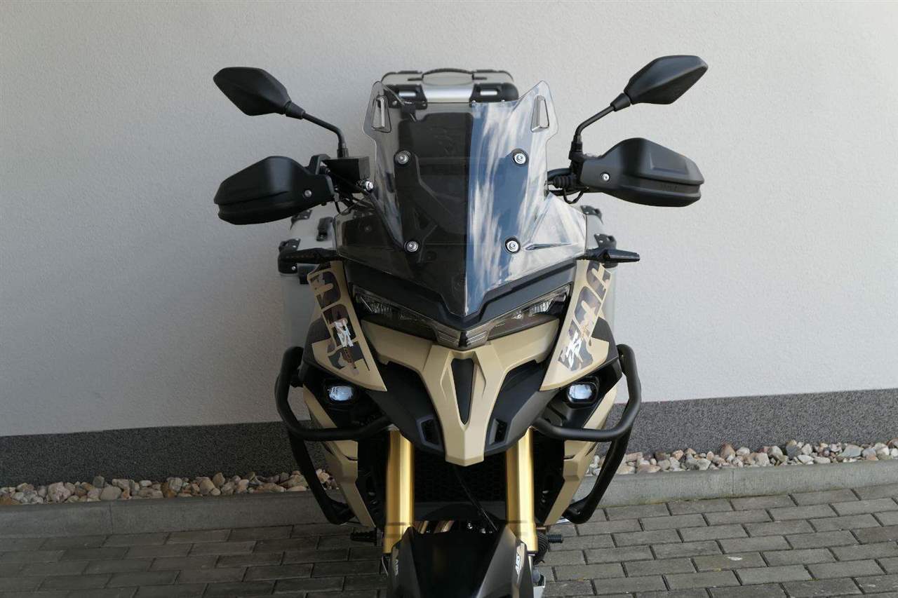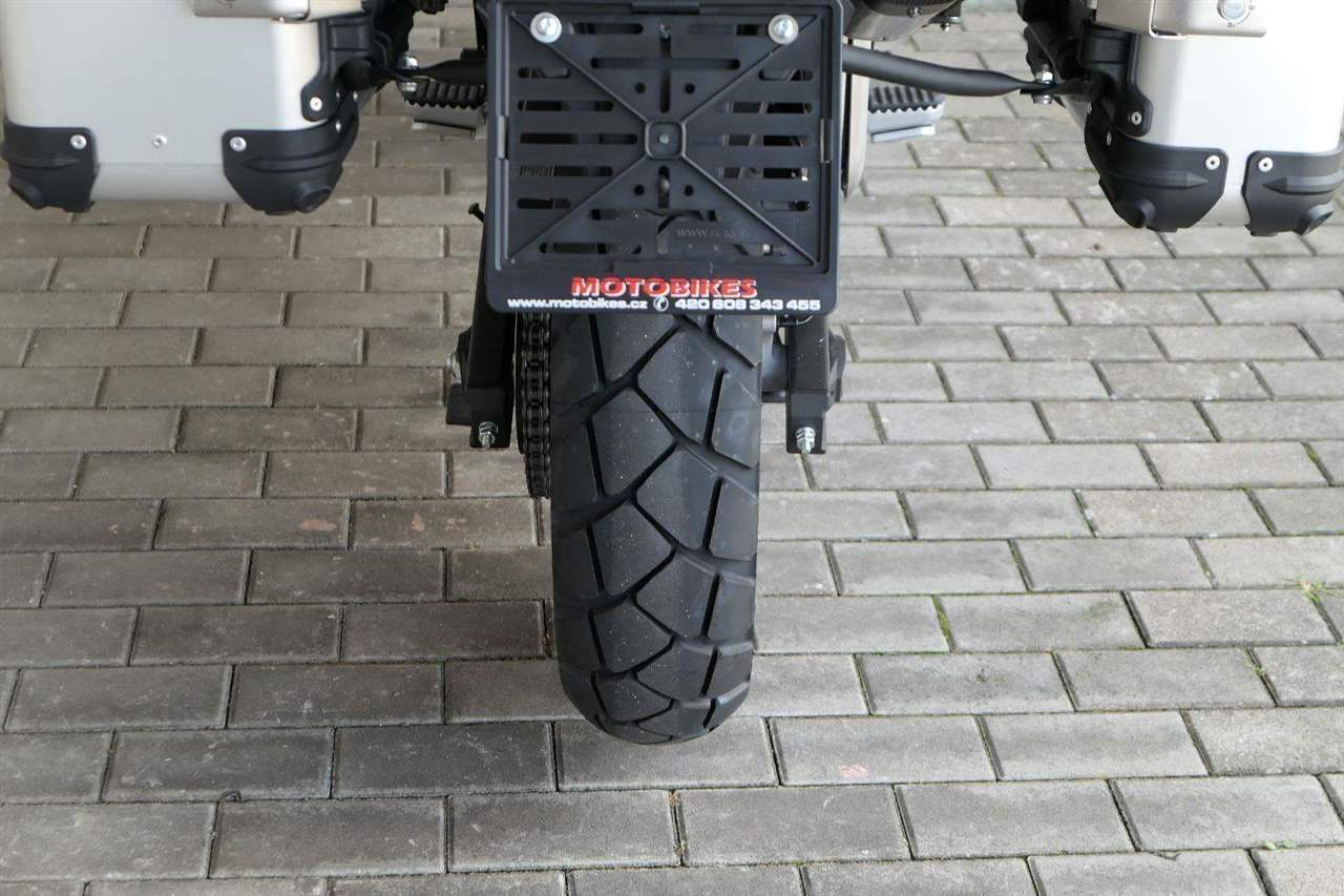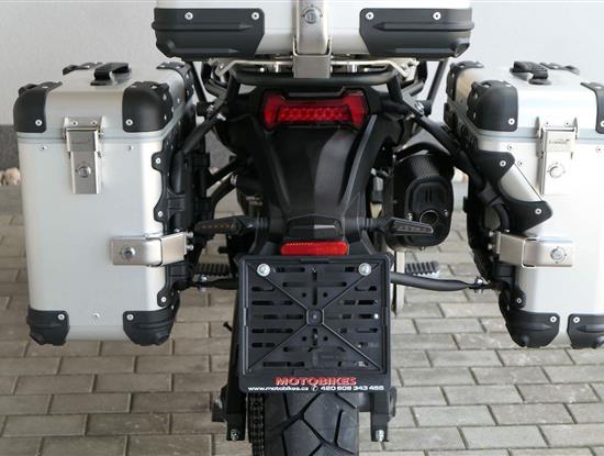 Těšit se můžeš taky na plexi, který si z místa řidiče bez nářadí nastavíš do dvou poloh. Oceníš i hliníkovej kryt motoru, LED světla včetně přídavnejch bodovek, boční i středovej stojan a hafo další výbavičky. Jo, a nově mám taky podsvícený ovladače na řídítkách, takže už žádný tápání ve tmě.