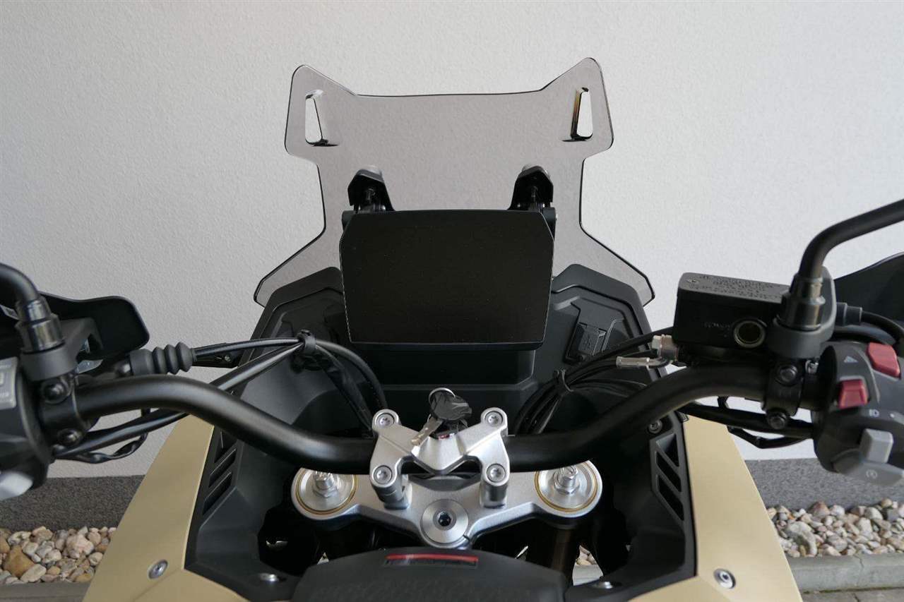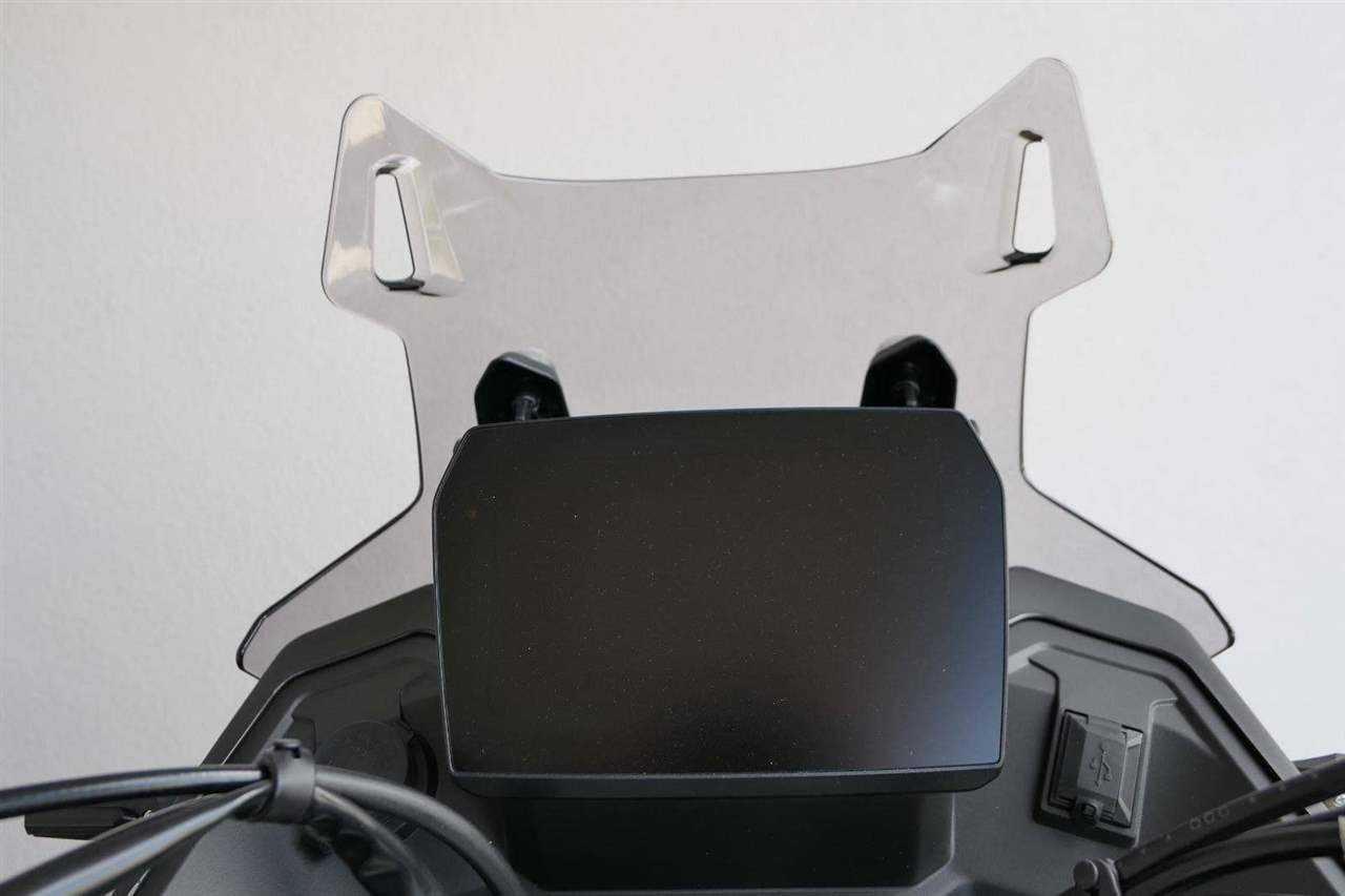 Kromě větší síly a lepšího podvozku mám taky vylepšenej 7palcovej displej. Má vyšší jas, takže na něm všecko krásně uvidíš i za vostrýho slunka. Mobil si snadno spáruješ pomocí blůtůčka. Jen co to uděláš, dostaneš na přístrojovku šipkovou navigaci, díky který nemineš ani tu nejzašitější odbočku. No a 12V zásuvka nebo USB konektor? Jasněže voboje!