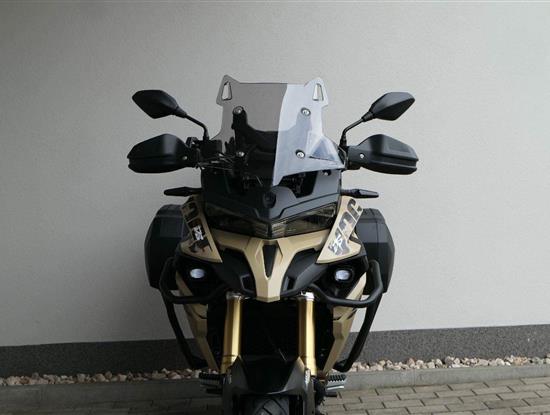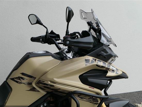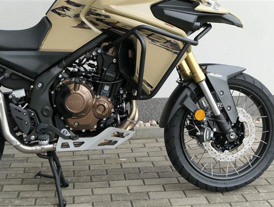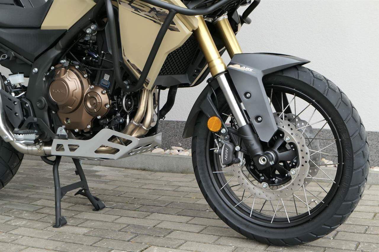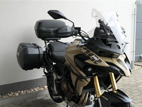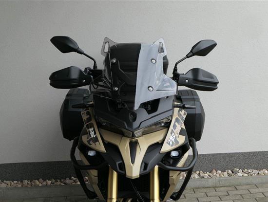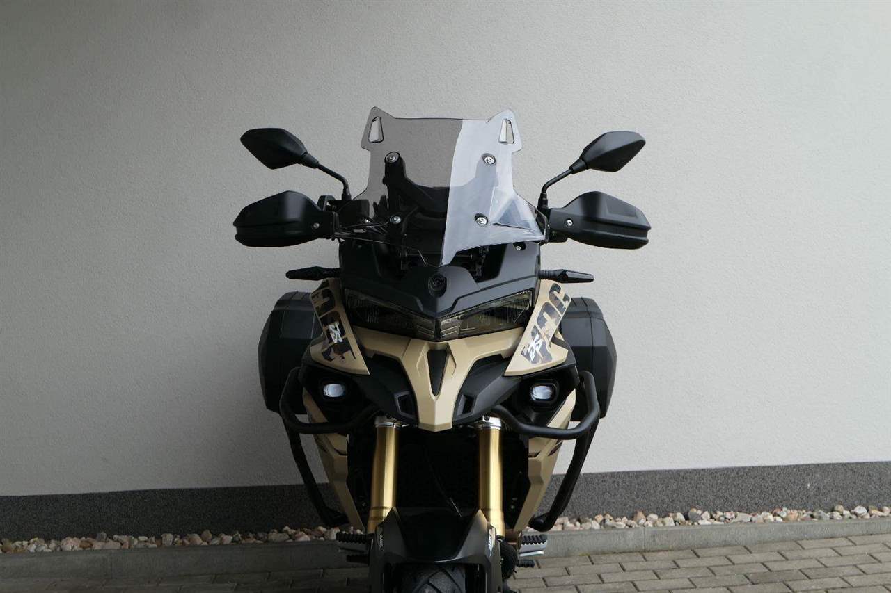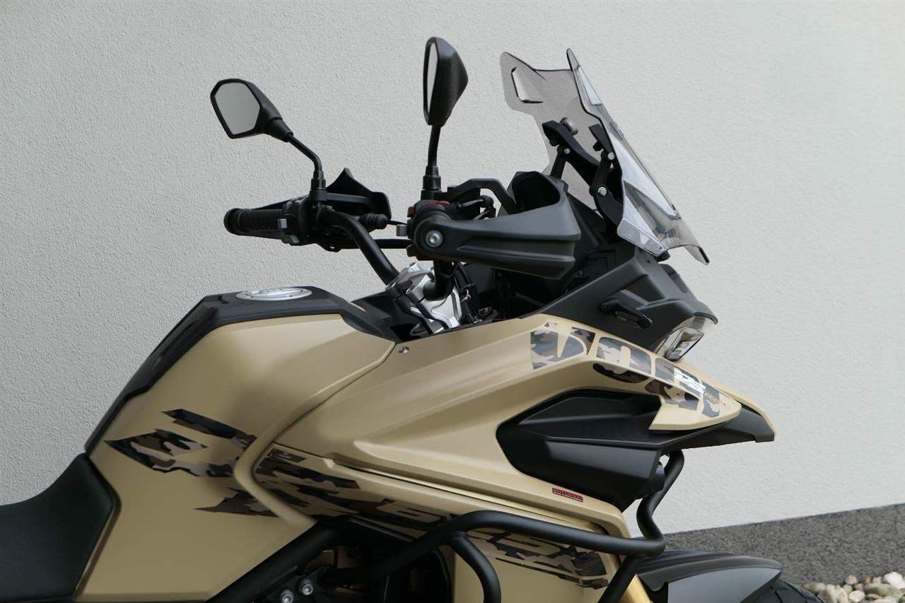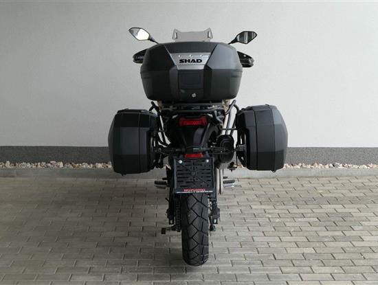 Těšit se můžeš taky na plexi, který si z místa řidiče bez nářadí nastavíš do dvou poloh. Oceníš i hliníkovej kryt motoru, LED světla včetně přídavnejch bodovek, boční i středovej stojan a hafo další výbavičky. Jo, a nově mám taky podsvícený ovladače na řídítkách, takže už žádný tápání ve tmě.