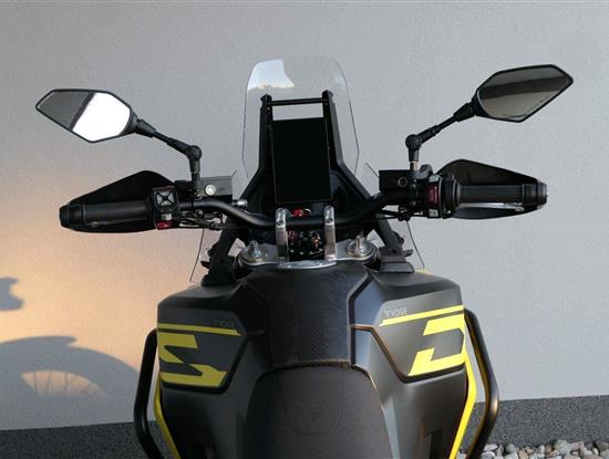 Displej na stojáka, abys na něj viděl i ze stupaček. Na barevnej TFT displej s vysokým jasem a kontrastem krásně uvidíš i za toho nejvostřejšího slunka. A že je postavenej na vejšku? To není náhoda – když vyskočíš do stupaček, máš pořád perfektní přehled. Displej můžeš ovládat přes chytrý udělátka na řídítkách a přes blůtůčko si ho spáruješ s mobilem.