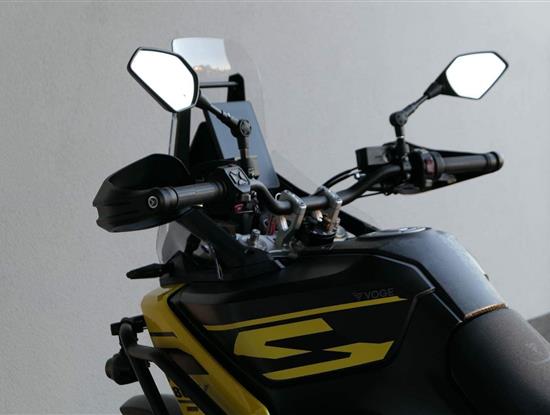 Můj štíhlej pas ti dovolí užít si jak jízdu vestoje, tak vsedě. Vysoký plexi mám fikaně posunutý dopředu, takže ti nebude mlátit do brady třeba při skocích. No a moje stupačky jsou nejen prostorný, ale samože taky zubatý, takže tě podržej v každý situaci.