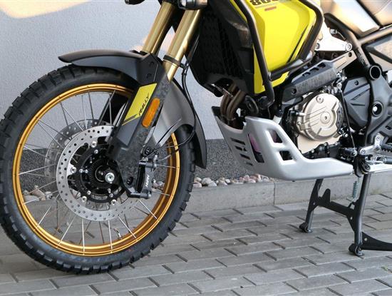 Podvozek testovanej v pekle. Věděls, že než mě pustili do prodeje, musela jsem přežít peklo v poušti Gobi? 30 000 kiláků pořádnýho mučení! Ale s kompletním tlumením vod Kayaby, brzdama Nissin a štelovatelným tlumičem řízení to byla vlastně jen rozcvička.