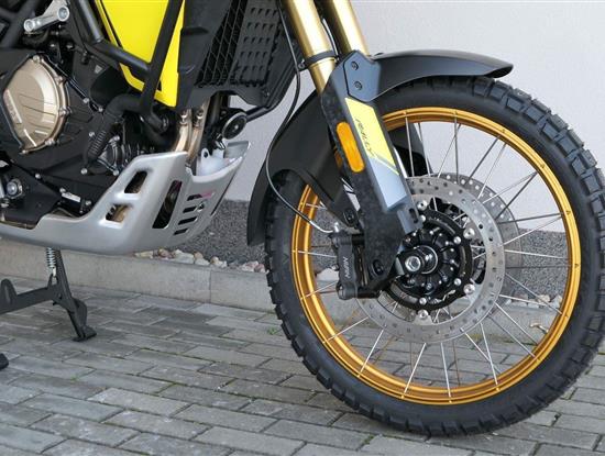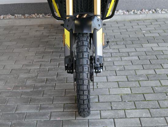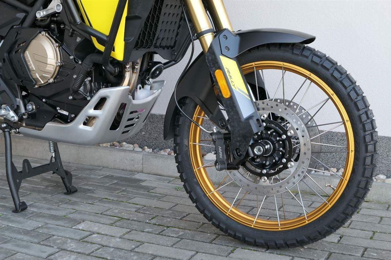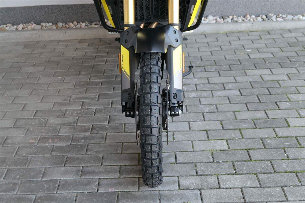 Offroadový kola jak zákon káže. Vpředu najdeš jednadvacítku, vzadu osmnáctku – prostě offroad klasika. Kola jsou samozřejmě drátový a bezdušový. Na ráfkách dostaneš gumy Pirelli Scorpion Rally STR, který si hravě poraděj jak s asfaltem, tak s terénem.