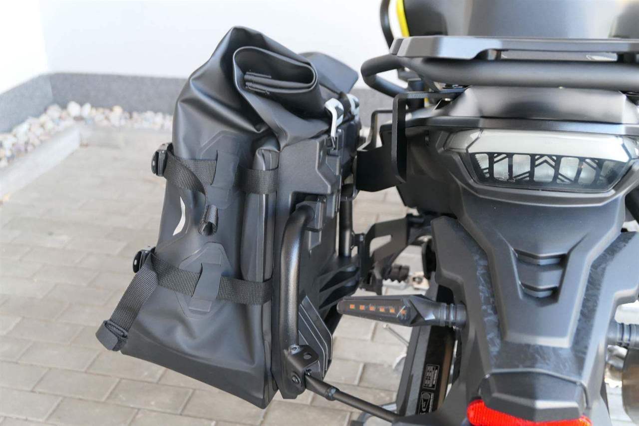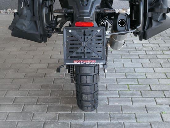 Stylovej zadek s nosičem. Za tímhle zadkem se obdivně otočí i nemotorkáři. Ostrý linky rudejch světel i štíhlý blikačky dávaj najevo, že tahle mašina nemá daleko ke stíhačce. Všecko svícení je samozřejmě komplet v LEDu. V základu dostaneš taky zadní nosič, takže nasaď kufry a pořádnej trip může začít!