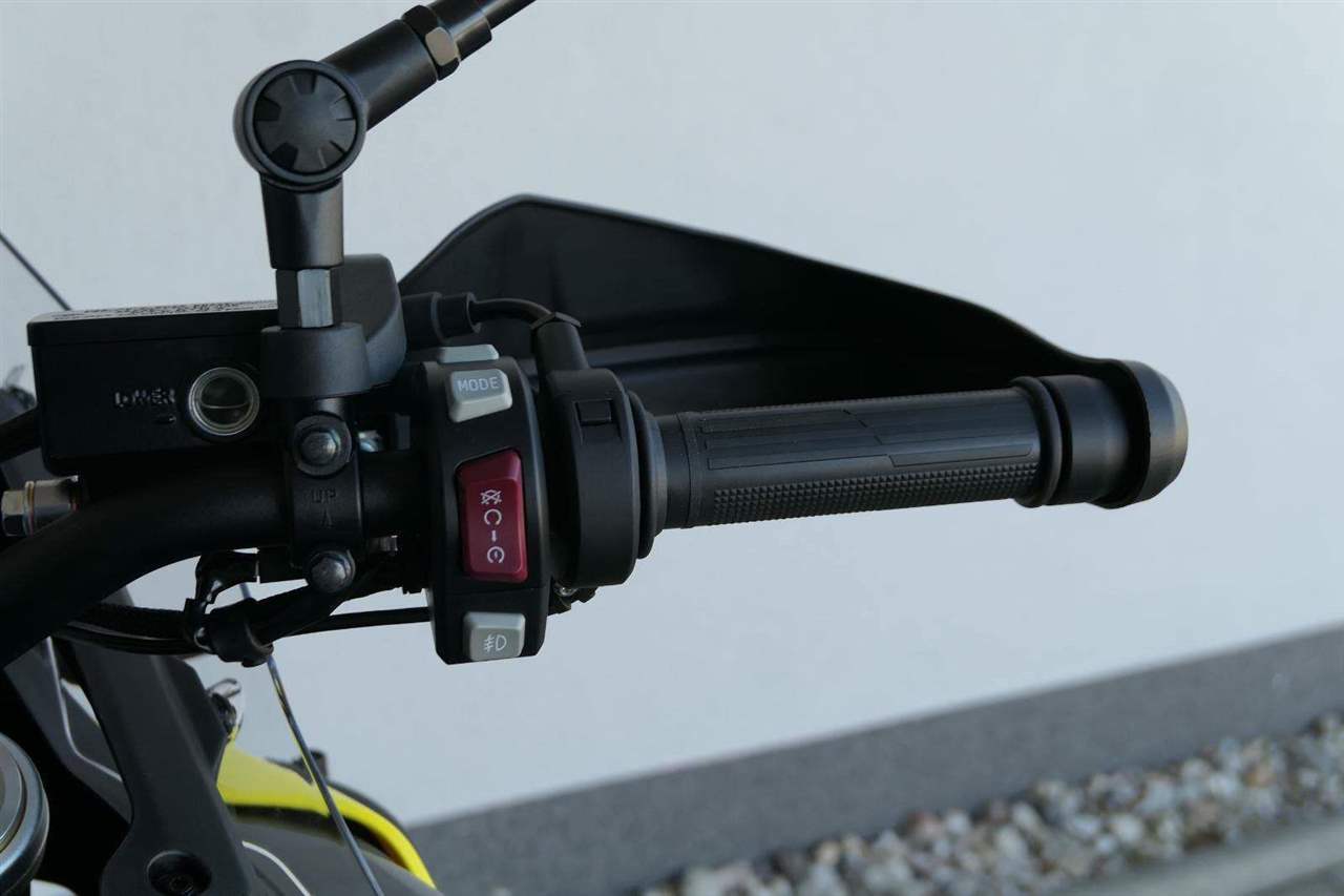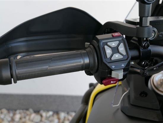 Displej na stojáka, abys na něj viděl i ze stupaček. Na barevnej TFT displej s vysokým jasem a kontrastem krásně uvidíš i za toho nejvostřejšího slunka. A že je postavenej na vejšku? To není náhoda – když vyskočíš do stupaček, máš pořád perfektní přehled. Displej můžeš ovládat přes chytrý udělátka na řídítkách a přes blůtůčko si ho spáruješ s mobilem.