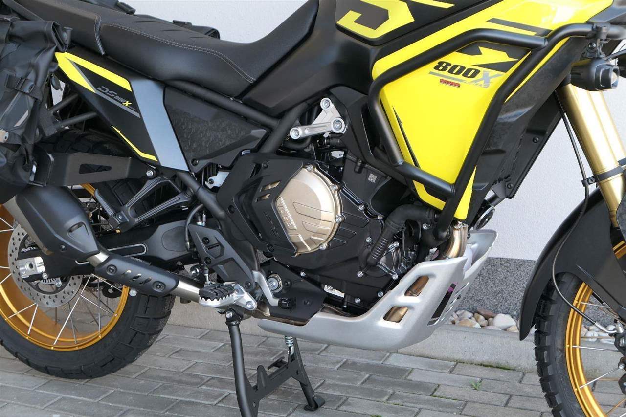 Fungl novej dvouválec 800 ccm. Z tohodle dvouválcovýho vodníka vyždímáš pořádnou sílu. 94 koní tě požene až 190 kiláků v hodině. Vrnět blahem budeš i nad krouťákem – maximum 81 Nm má už v 6 500 otáček. Tenhle fungl novej motor z tebe udělá skutečnýho siláka, ať už budeš frčet po dálnici nebo dovádět v terénu.