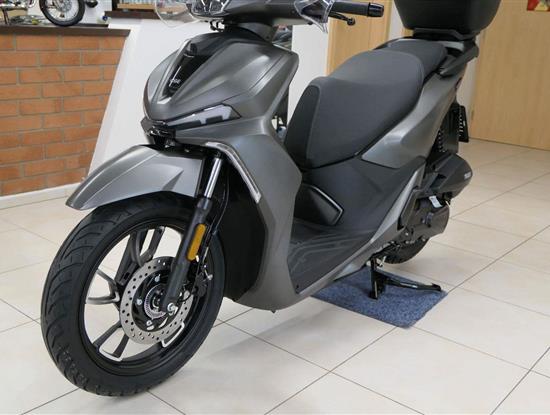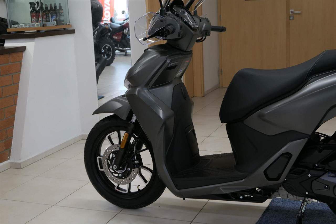 Nevěř řečem o tom, že vysoký kola jsou nudný. Pod ladnýma křivkama tepe spolehlivej, kapalinou chlazenej, čtyřtaktní jednoválec vo objemu 125 ccm. Město mu sedí jak dobře padnoucí oblek. S krouťákem 11 Nm při 6 500 otáčkách a výkonem skoro 12 koní zmákneš křižovatky i městský obchvaty. Trochu pootočíš zápěstím a akcelerace s hladkou automatickou CVT převodovkou se o všechno postará.