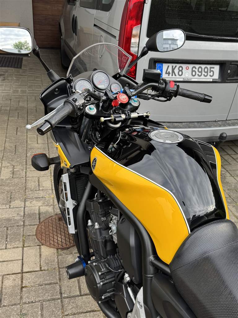 Upravit Motocykly na prodej Yamaha FZS 1000 Fazer Upravit Vložit nový inzerát 79 000 Kč 83 000 Kč Yamaha FZS 1000 Fazer 2003 Prodám krásnou, ale nevyužitou Yamahu FZ1 Fazer v krasne žlutočerné barvě, která se vyráběla jen pro trh spojených států. Motocykl ma nové pneumatiky, nový olej a novou TK. K motocyklu pridám novou řetězovou sadu, originál výfuk a karbonový blatník. Na motocyklu je zadní kufr Givi a přidám dvě boční nové brašny. Motorku jsem kupoval před pár měsíci za 90000 Kč. Nyní prodávám za 82000Kč. nová cena Objem: 1 000 cm3 Vyrobeno: 2003 Najeto: 38 000 km Výkon: 107 kW (145 k) STK: 2028 Původ: USA Výrobce: Yamaha Model: FZS 1000 Fazer Zařazení: silniční, sportovní Zobrazeno: 622× Lokalita: Cheb, Karlovarský kraj Vloženo: 6.11.2025 Typ inzerátu: bezplatná inzerce Vložit do schránky Nahlásit závadný inzerát Sdílet inzerát Prodávající Telefon: 775661395 E-mail: Odpovedět na inzerát Podobné inzeráty Yamaha FZS 1000 Fazer 2002 Olomoucký 56 900 Kč Voge 900 DS 2025 Pardubický 274 990 Kč Triumph Tiger 900 Rally Pro 2021 Moravskoslezský 295 000 Kč Voge 800 Rally 2025 Pardubický 219 990 Kč BMW R 80 RT 1686 Středočeský 115 000 Kč Aprilia RSV 1000 R 2003 Jihomoravský 149 999 Kč Triumph Tiger 1050 Sport 2017 Středočeský 150 000 Kč BMW R 1150 RT 2004 Jihomoravský 64 999 Kč Ducati Monster 1000 2003 Středočeský 130 000 Kč Voge 800 Rally 2025 Pardubický 219 990 Kč Yamaha BT 1100 Bulldog 2006 Zlínský 90 000 Kč Moto Guzzi Stelvio 1200 2011 Jihomoravský 129 999 Kč BMW R 1200 GS Adventure 2013 Středočeský 250 000 Kč Voge 800 Rally 2025 Pardubický 219 990 Kč Triumph Tiger 1050 Sport 2013 Olomoucký 150 000 Kč BMW K 1200 LT 2004 Jihomoravský 69 999 Kč Ducati Multistrada 1200 S 2013 Jihomoravský 144 999 Kč Ducati ST 2 2005 Jihomoravský 99 999 Kč BMW R 1150 RS 2003 Jihomoravský 54 999 Kč Voge 800 Rally 2005 Pardubický 219 990 Kč Oveření přístupu Heslo pro editaci