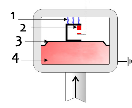 Proto byste tuto kontrolku zřejmě potřeboval. Bohužel jednoduché řešení na to neexistuje. Měření mazání se dělá dvěma způsoby, buď se měří tlak, nebo hladina oleje ve vaně. Tlak se měří za čerpadlem pomocí čidla. Jakmile poklesne tlak, tedy míra oleje, rozsvítí se kontrolka. Druhý způsob je plovák v olejové vaně. Pro Vás by připadala v úvahu první varianta tlakového čidla. Musel byste nejdřív podle manuálu nalézt vhodné místo, kde se dá navrtat díra do olejového kanálu, který jde do hlavy motoru, většinou na válci. Do dírky vyřezat závit a zašroubovat vhodné čidlo. Tato úprava je náročná, ale ještě se dá provézt. Problém nastane při určování mezního tlaku, kdy je oleje málo. Čidla fungují na principu kontaktu. Jsou v nich pružinky (1), které se při určitém tlaku stlačí a sepnou kontakt (2). Kontakt uzavře obvod a tím pádem přes něj teče proud a napětí. Jakmile se kontakt rozpojí - není tlak – a rozsvítí se kontrolka. Vaším cílem by tedy bylo zjistit jaký tlak oleje je v motoru (od výrobce, či měřením) a jaký tlak motor má při dolní hranici náplně oleje. Pro tyto tlaky následně koupit odpovídající snímač. Tlaky by se měli pohybovat v rozmezí 0.2 až 0.75 baru. Takže odpověď na otázku je, že neexistuje jednoduchý způsob.