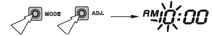 2) Stiskni obě tlačítka MODE a ADJUST déle jak dvě sekundy a hodiny by měly začít blikat.